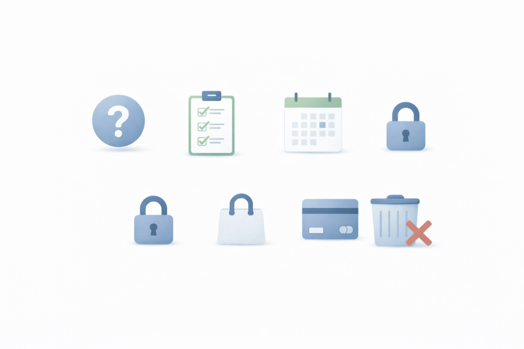 - おすすめは「登録した日に、次回請求日(無料体験終了日)をカレンダーに入れて、退会は早めに完了」。理由は、外勤だと忙しくて忘れるから。退会しても“いつまで使えるか”は規約・ストア案内の範囲で整理できます。