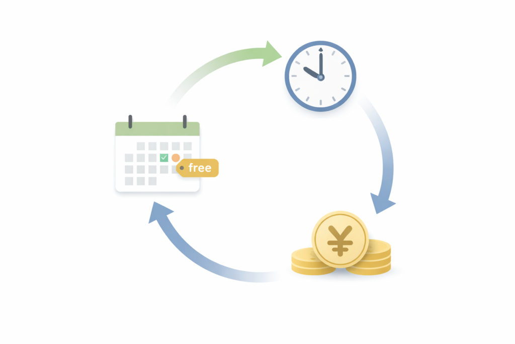 この3点を確認したら、あとは「無料体験の終了日=開始日+表示された無料期間」をスマホのカレンダーに入れるだけで、心理的な不安はほぼ消えます。