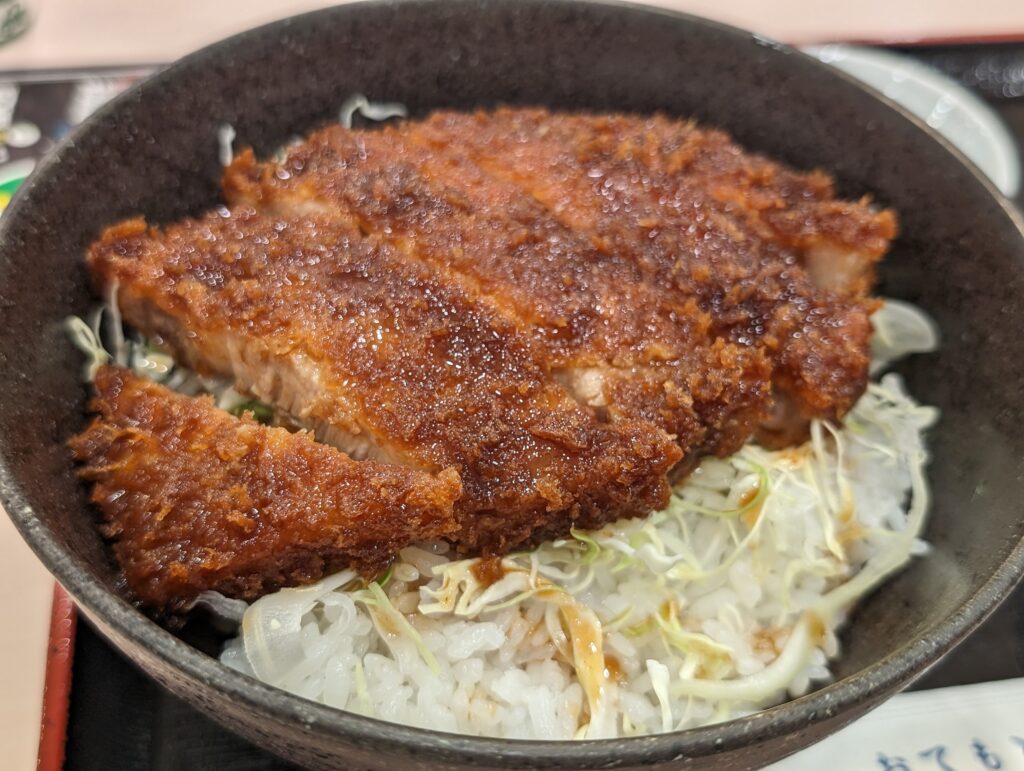 会津のソースカツ丼は「ご飯→千切りキャベツ→ソースを浸したトンカツ」が基本形。