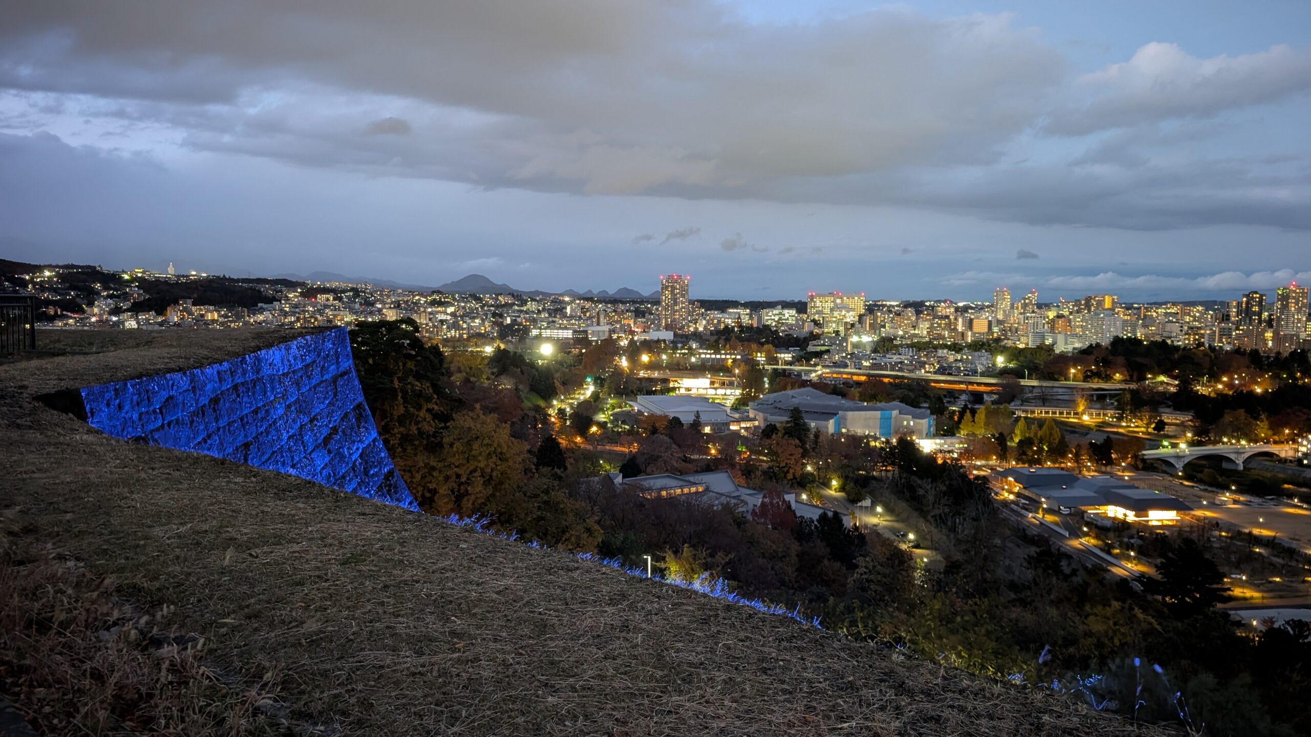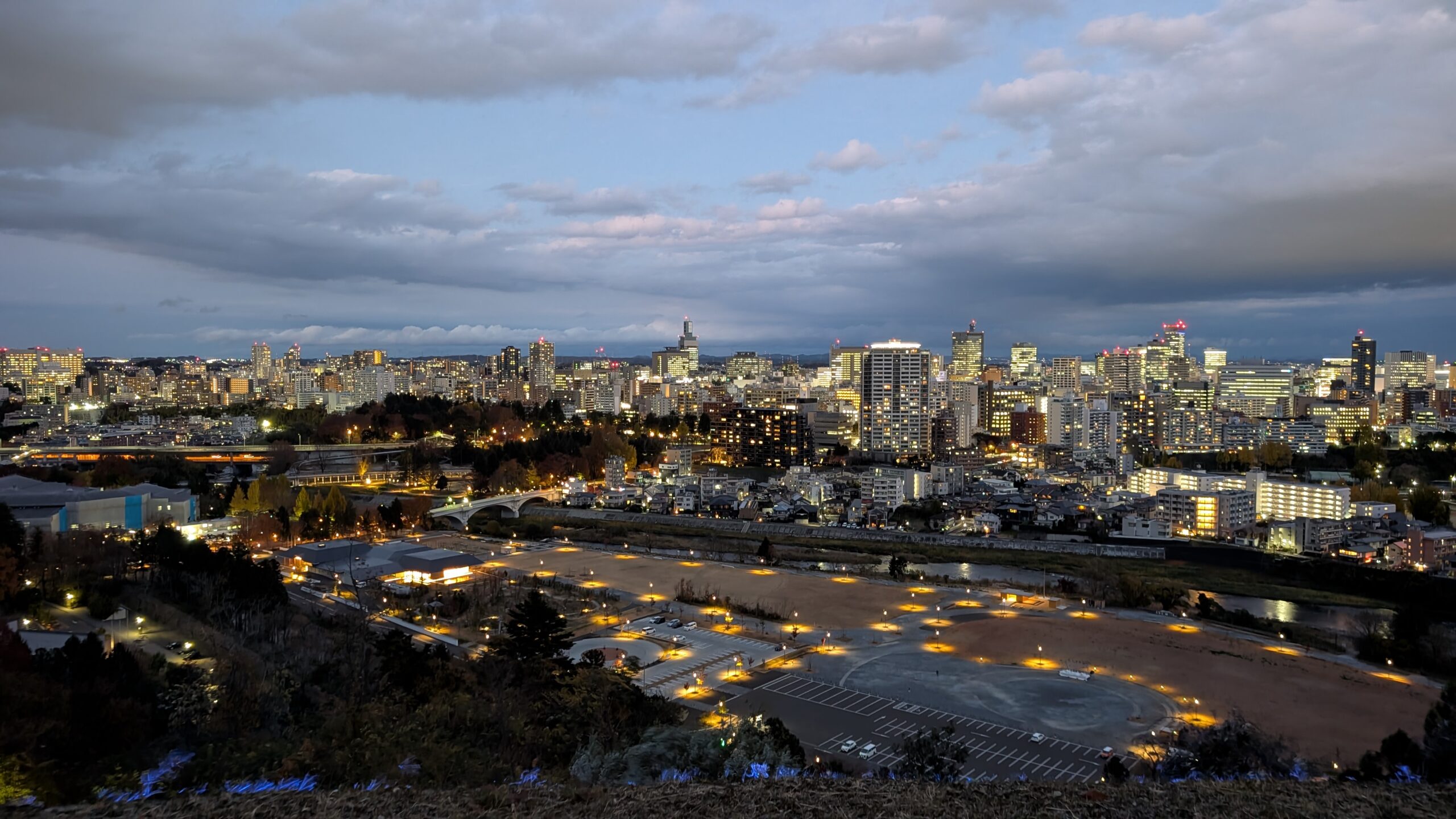 伊達政宗が築いた仙台城(青葉城)は、現在は天守こそ残っていないものの、石垣と再建された櫓、そして政宗公の騎馬像が立つ展望スポットとして親しまれています。標高約130mの青葉山からは、仙台市街と太平洋方面まで一望可能です。