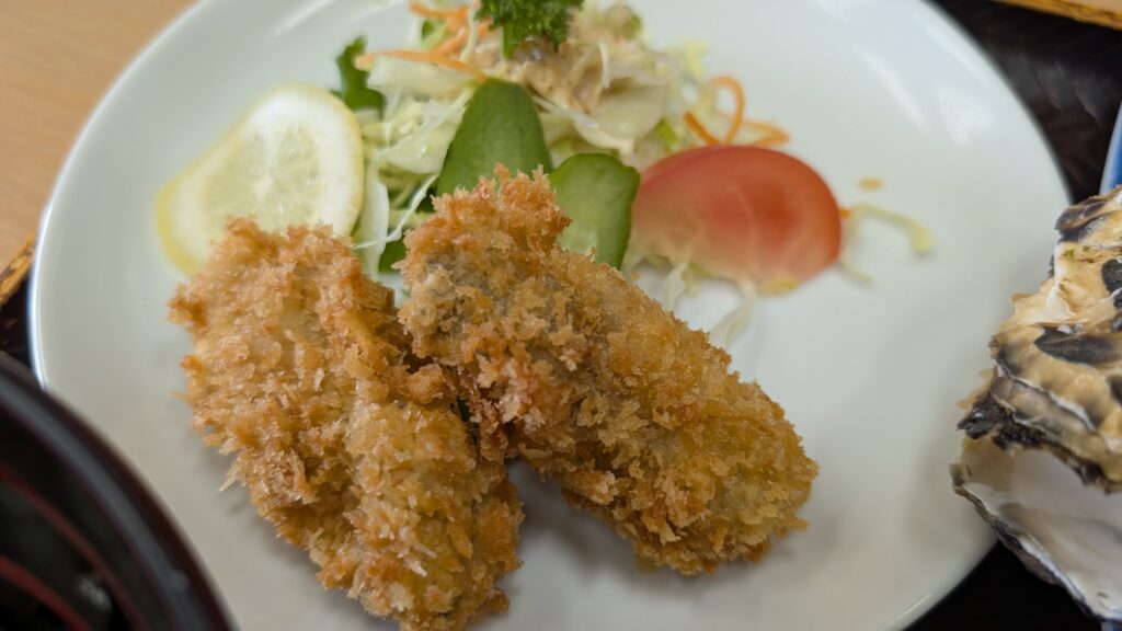 • かき丼+フライ+殻焼きがついたボリューム満点の定食