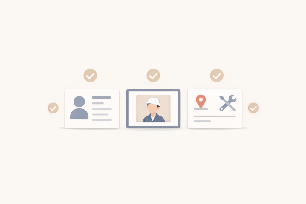 登録前に、自己紹介・対応エリア・得意工事・アイコン写真を整理しておくと、その後の設定も進めやすくなります。